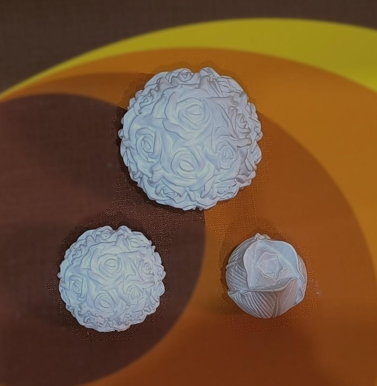 Each sphere features a different arrangement of delicate roses—perfect for both modern and romantic interiors. It also makes a lovely gift idea for flower and concrete lovers!