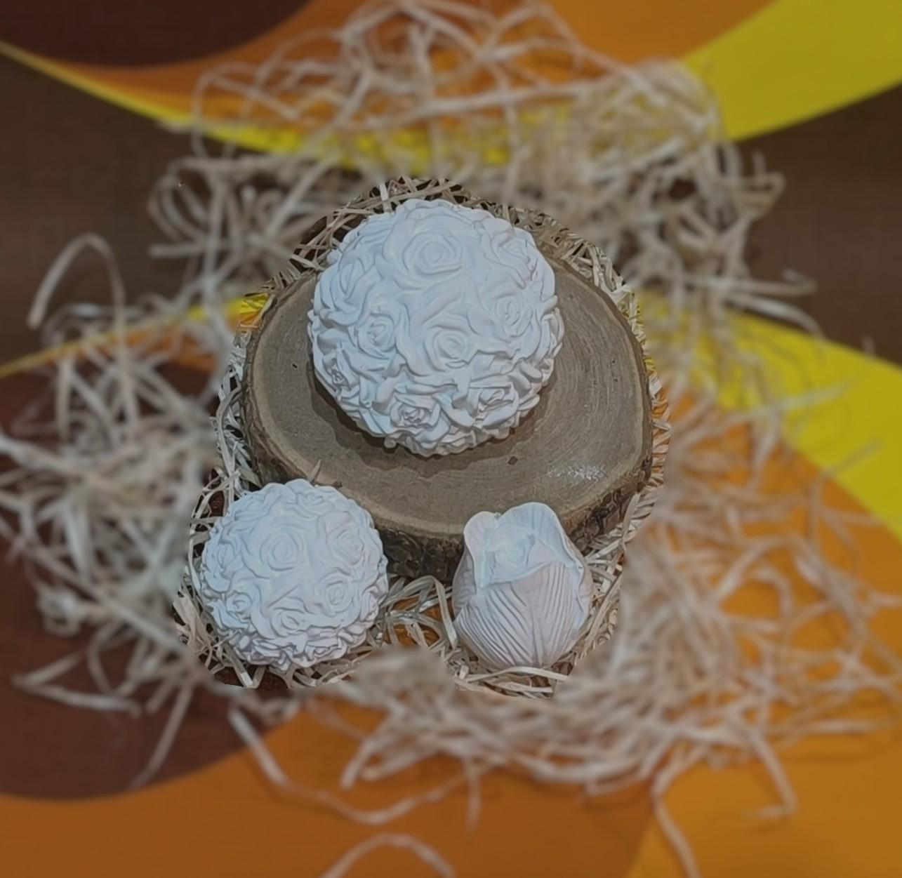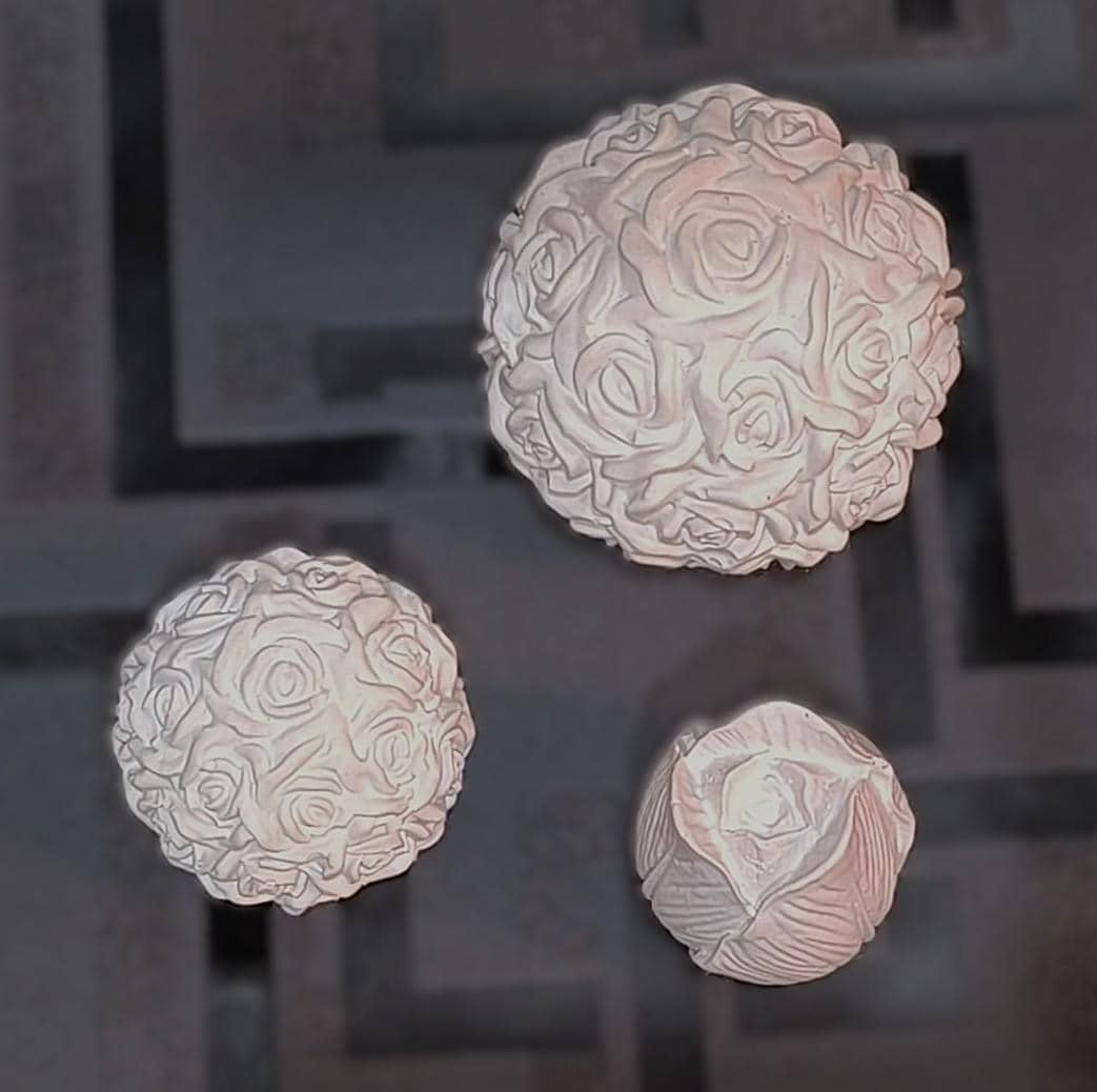 Decorative balls with rose pattern – 3-piece set made of Ultrament concrete