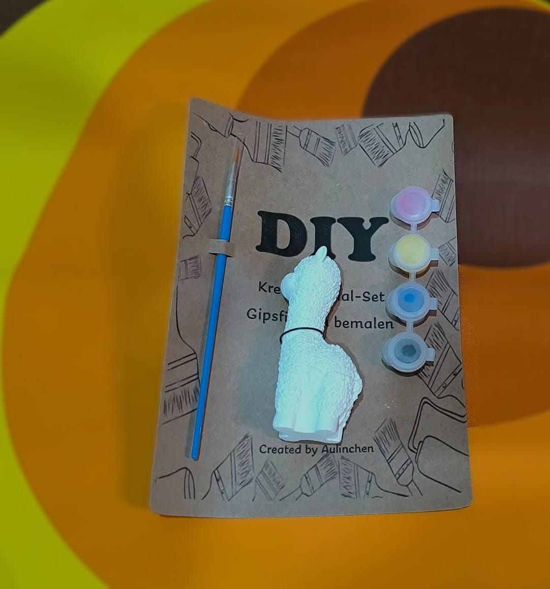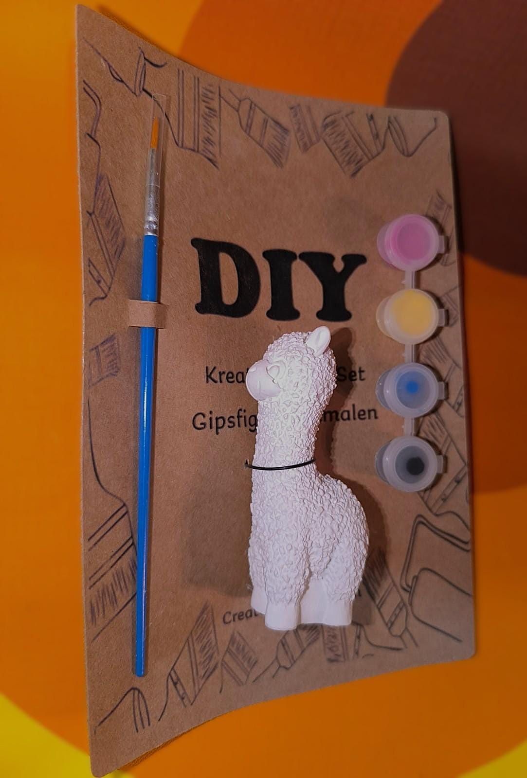 This lovingly assembled creative kit contains everything you need to create your own little work of art: a detailed alpaca plaster figure made of high-quality KeraFun, four cheerful colors (pink, yellow, blue, gray), and a fine brush. Ideal for children, craft enthusiasts, or as an original gift idea.