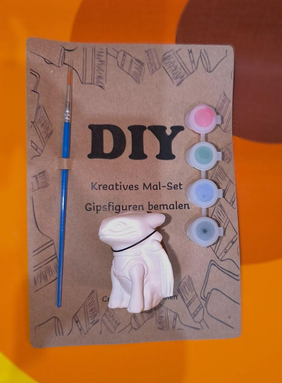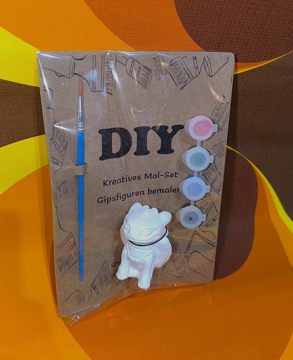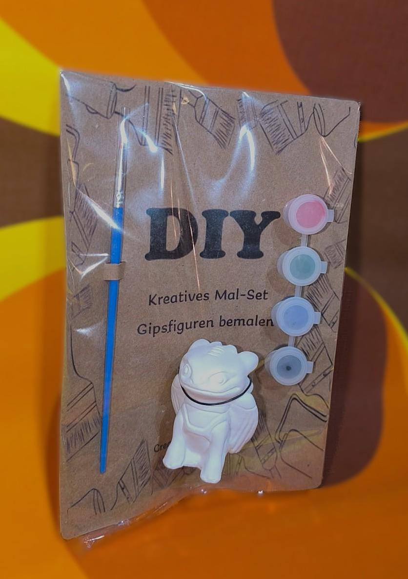 This creative painting set contains everything you need to bring your own little dragon to life: a finely crafted plaster figure made of high-quality KeraFun, four carefully coordinated colors (red, green, blue, black), a precise brush, and stylish DIY-designed packaging.