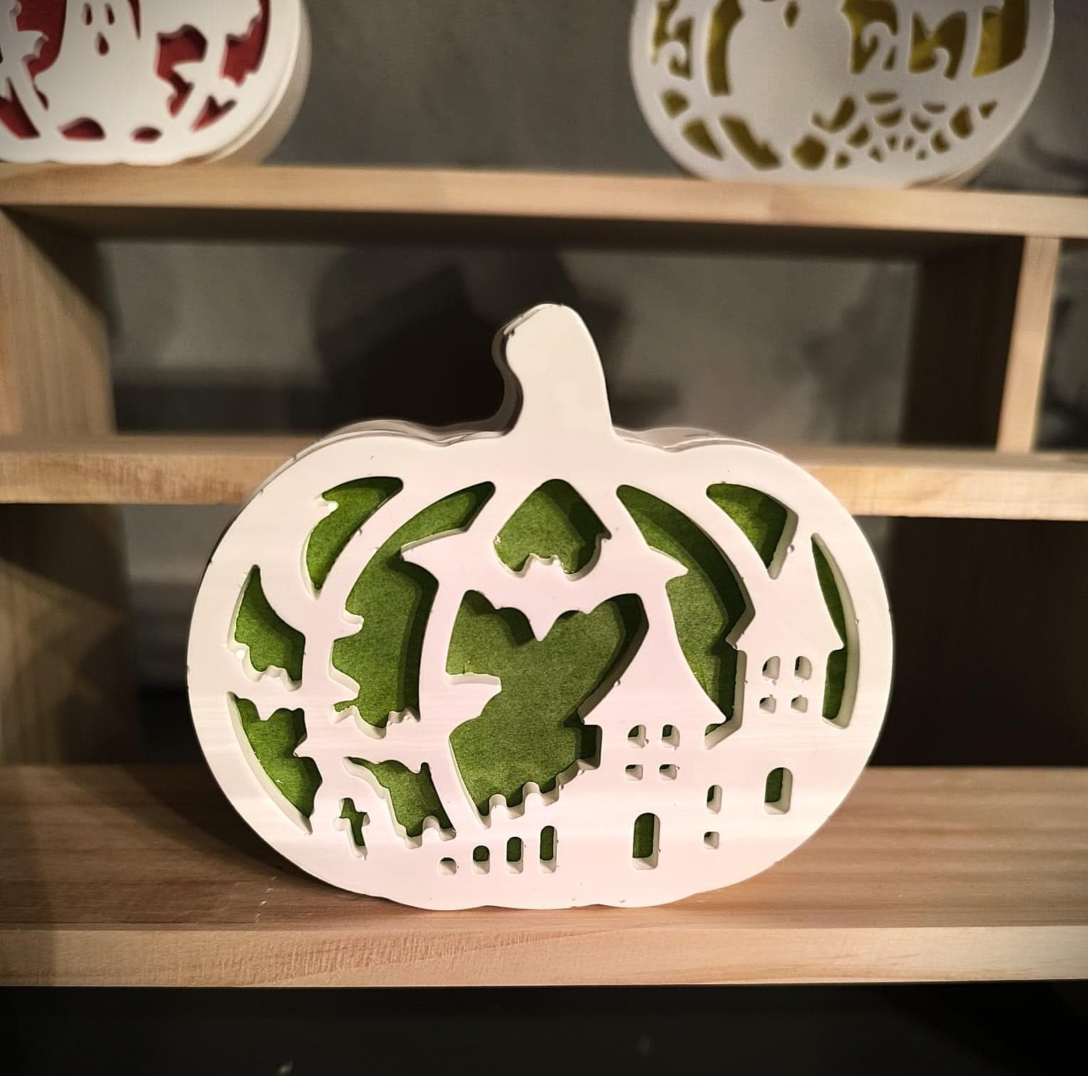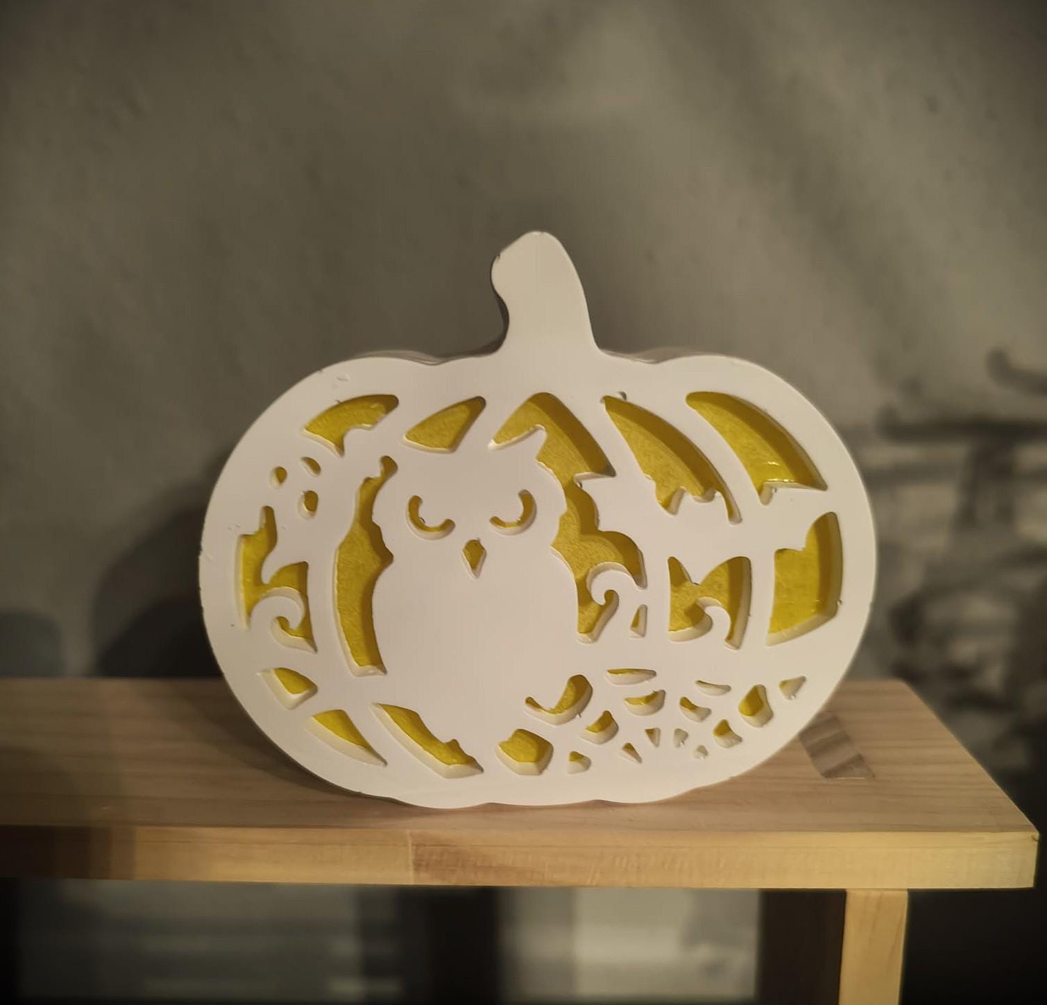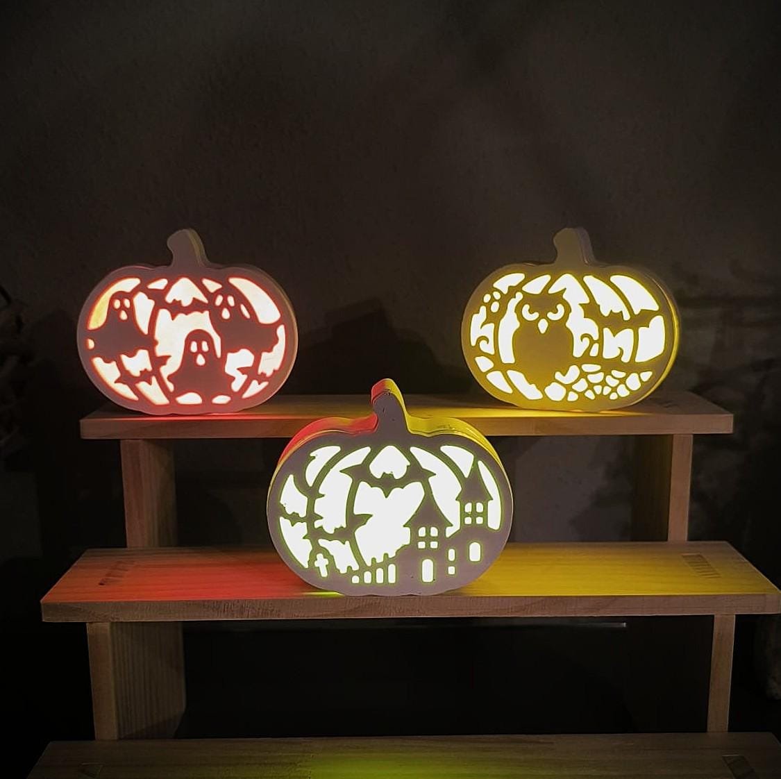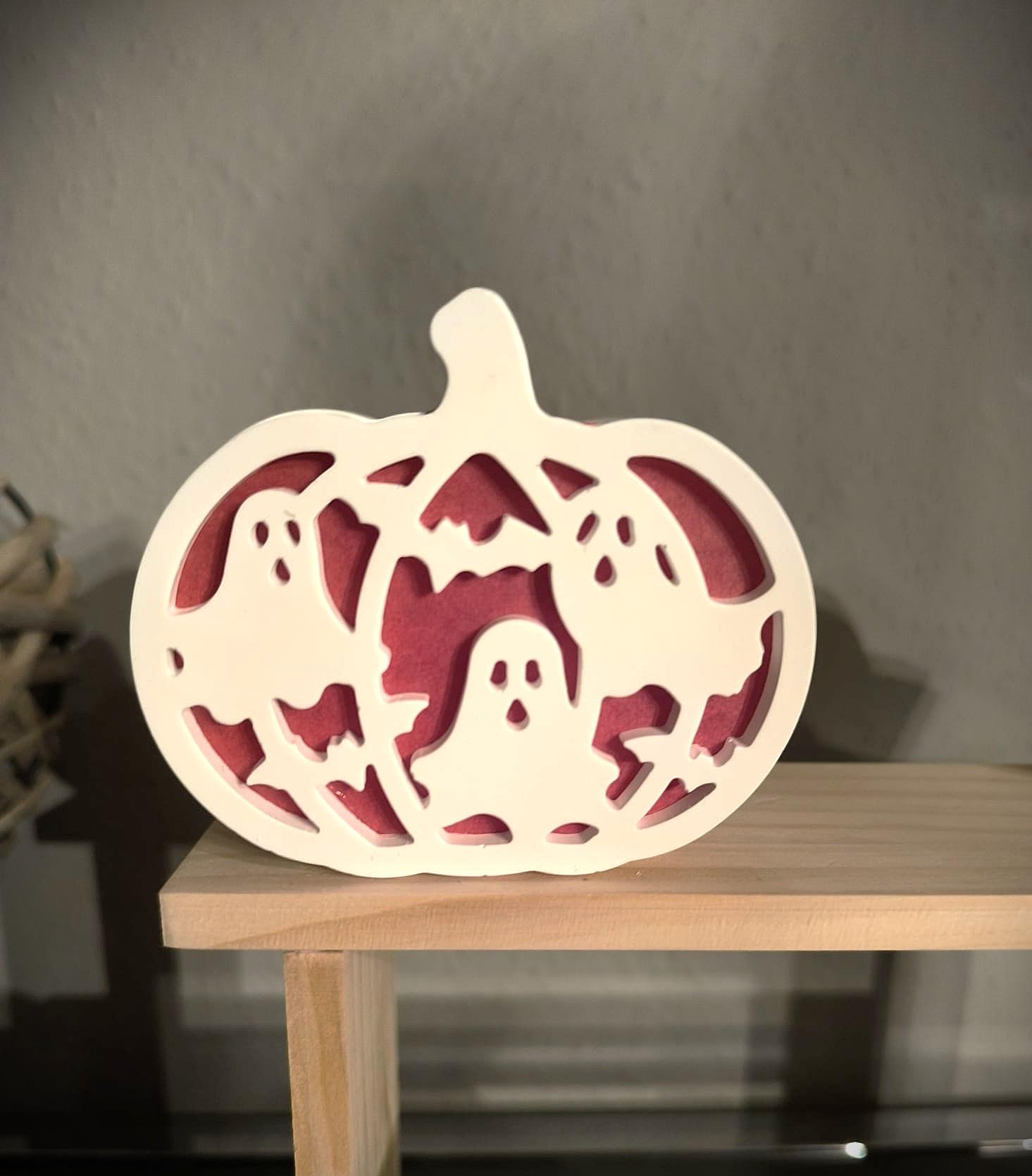 Give your home a festive Halloween atmosphere with this unique pumpkin decoration made from high-quality KeraFun. Each piece is lovingly crafted and features intricate motifs such as ghosts, bats, or owls, which are mysteriously illuminated by the integrated LED lighting. The warm light creates a cozy yet spooky atmosphere – perfect for a windowsill, shelf, or festively decorated table.