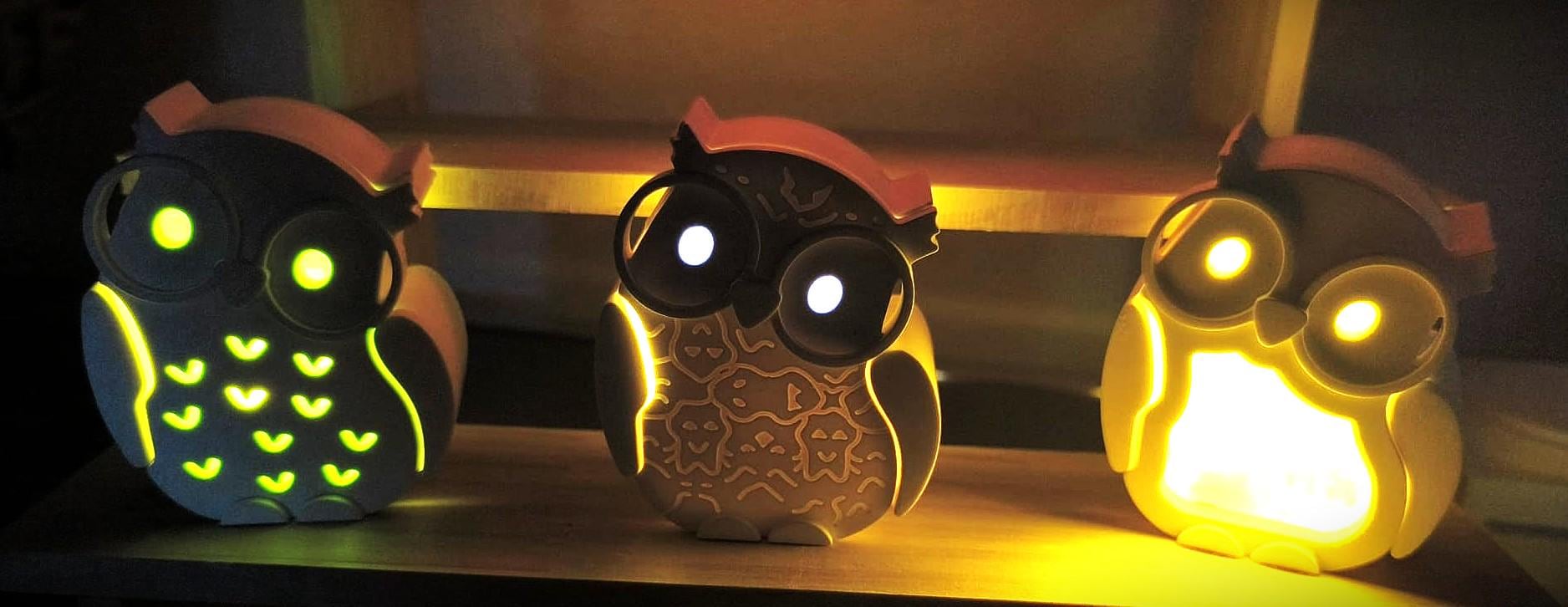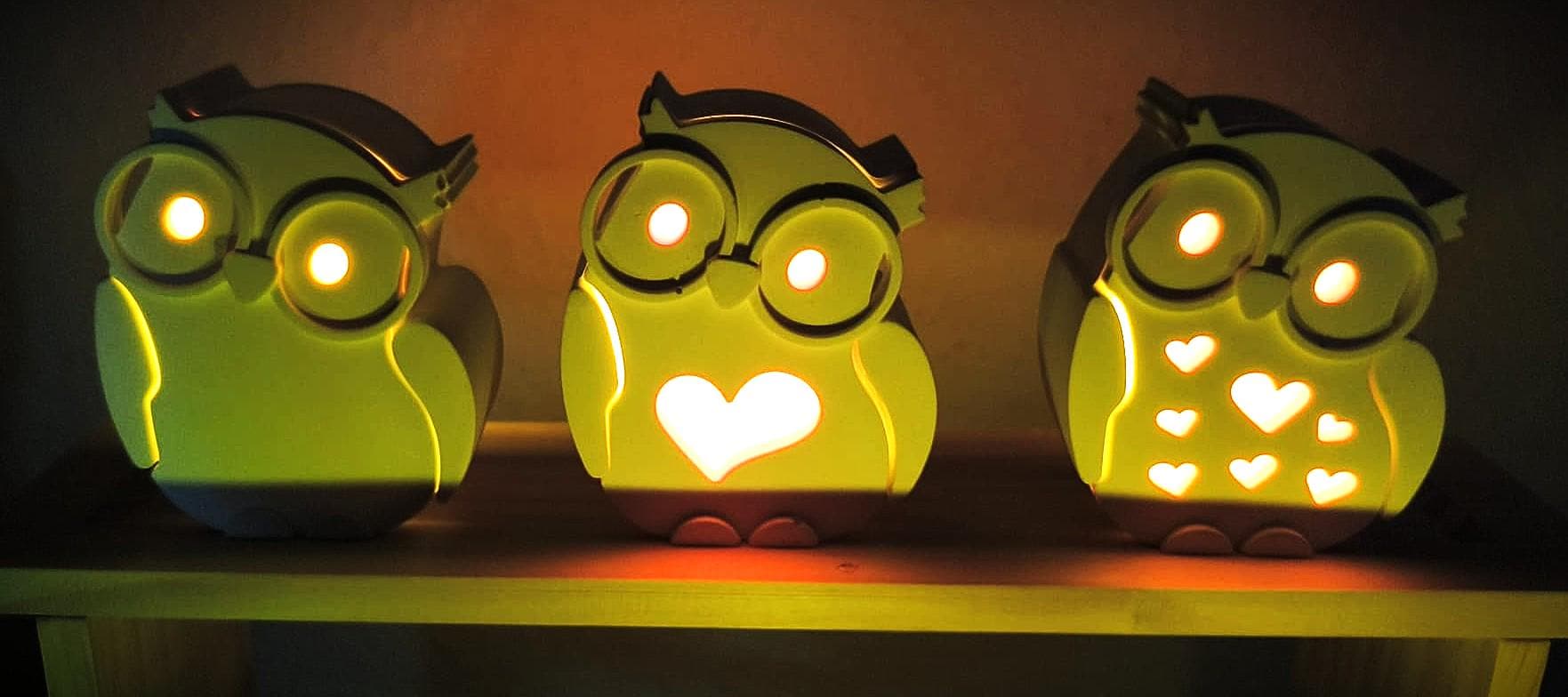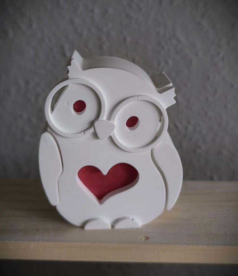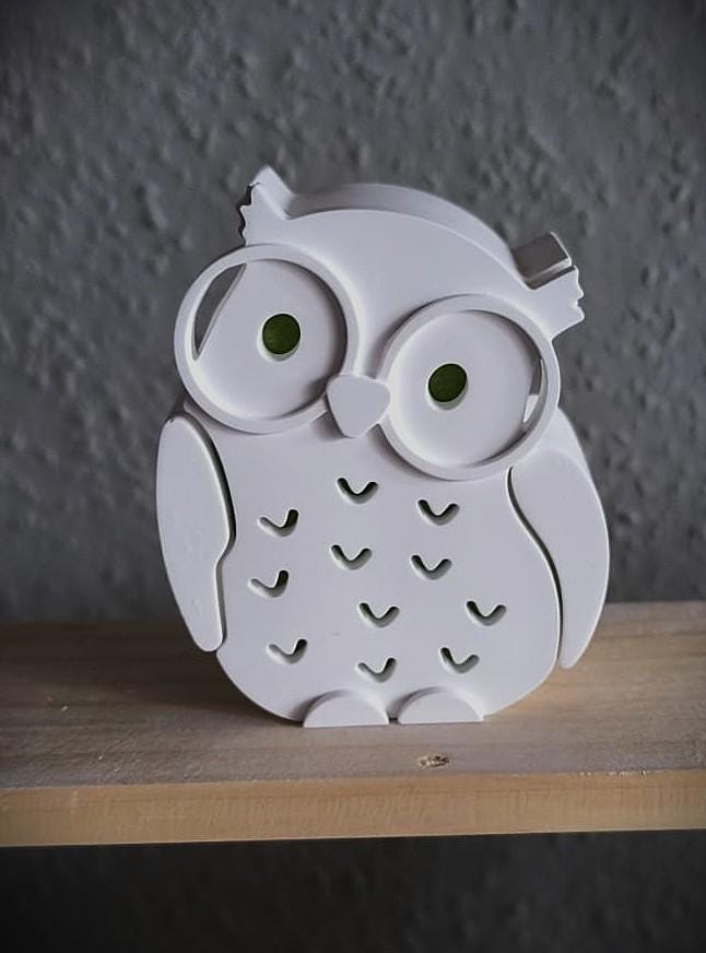 These hand-cast owl night lights made of high-quality Raysin bring warm, soft light and a loving atmosphere to any home. Each owl is unique—perfect as a gift for a birth or christening, or simply to treat yourself to a little coziness.