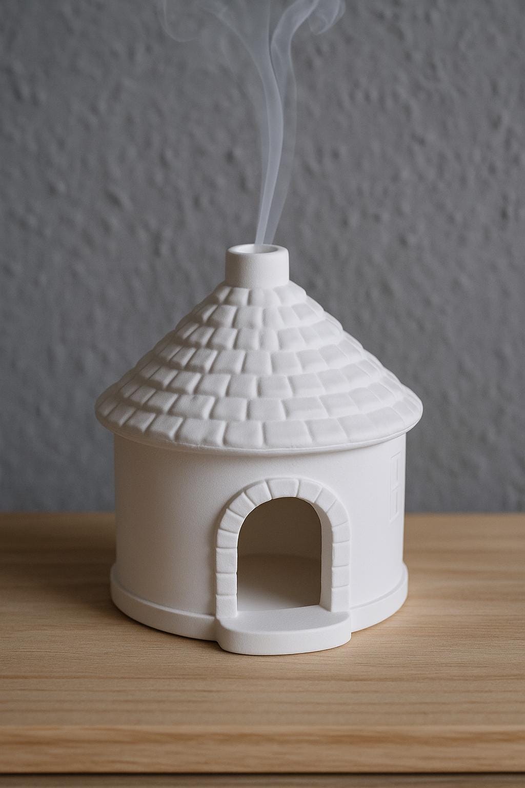 This lovingly handcrafted incense burner made from high-quality Venusarm wood brings warmth and coziness to your home. The smoke rising from the small chimney creates a magical, wintery atmosphere—perfect for relaxing evenings or as a special gift.