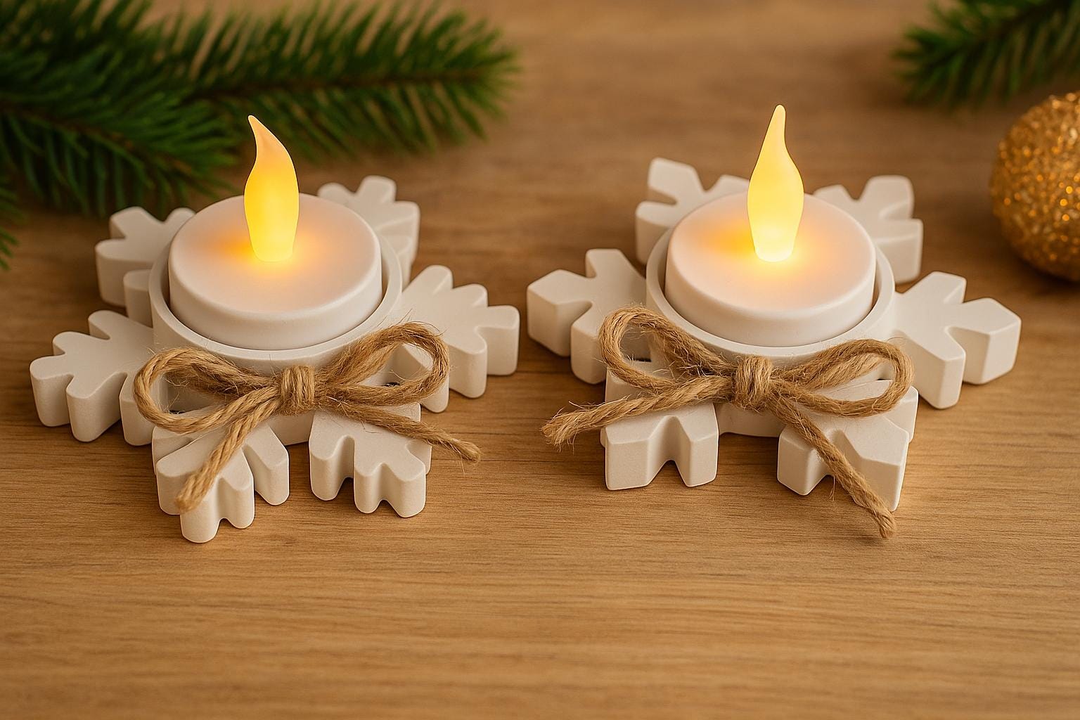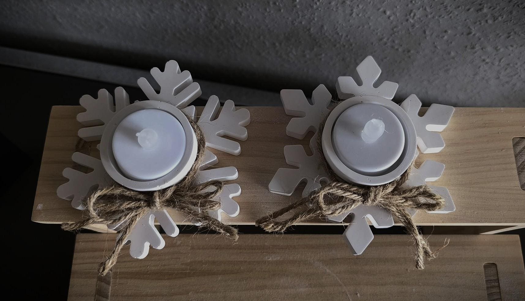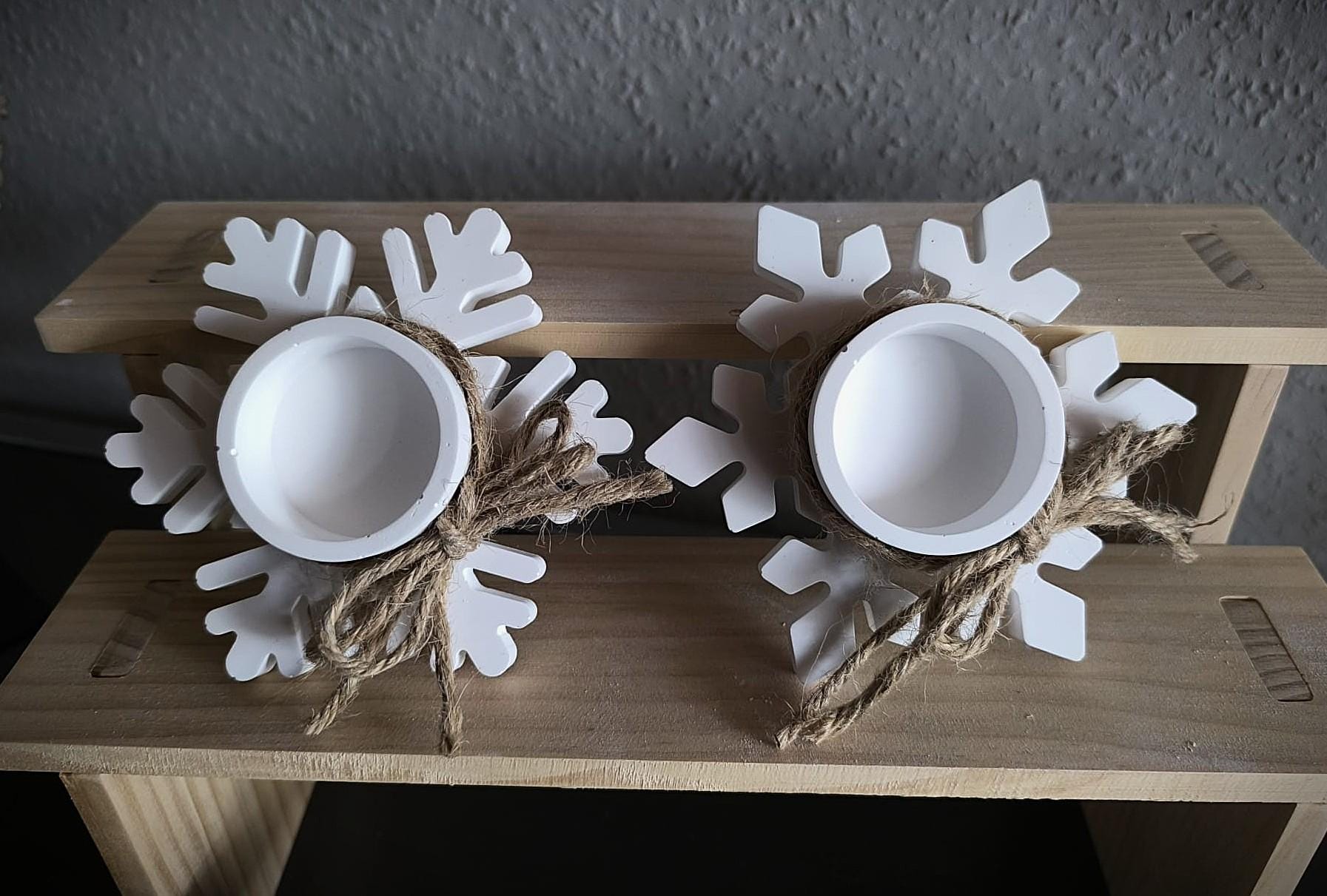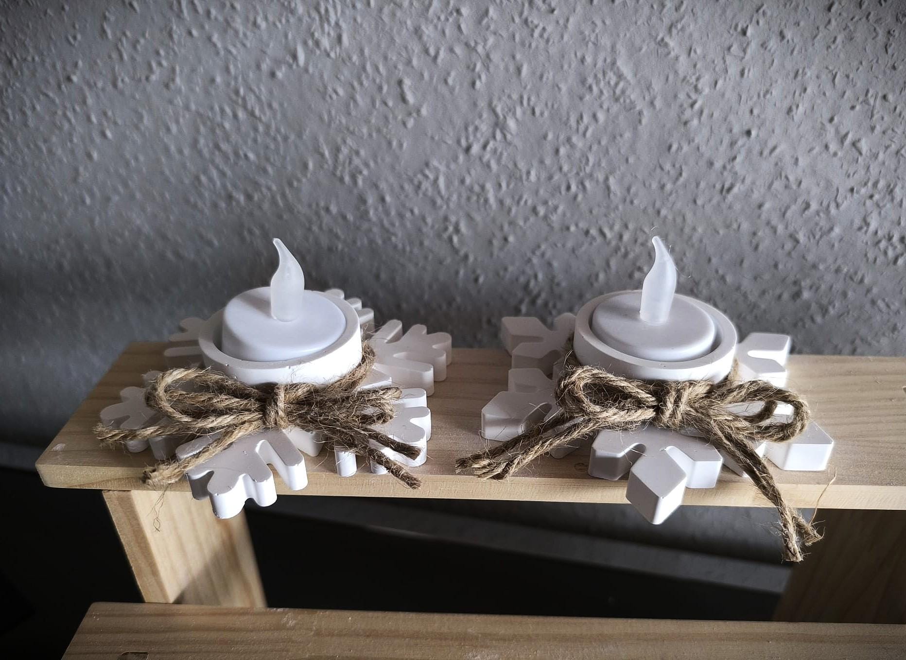 These lovingly handcrafted snowflake tealight holders, made from high-quality casting powder, add a touch of winter magic and a warm, cozy atmosphere to your home. With their natural jute ribbon, they're the perfect addition to festive table decorations, Advent evenings, or as a stylish gift.