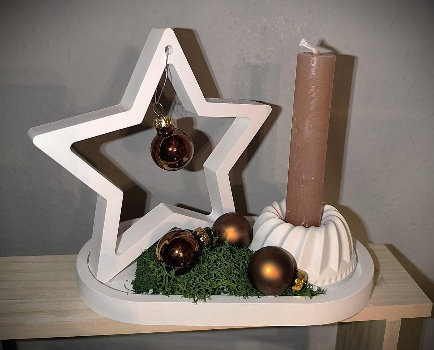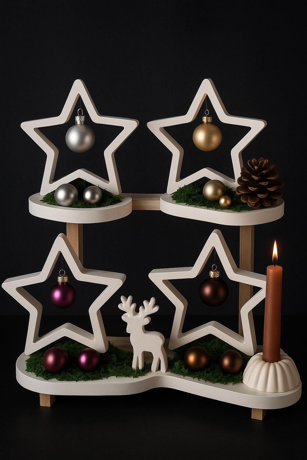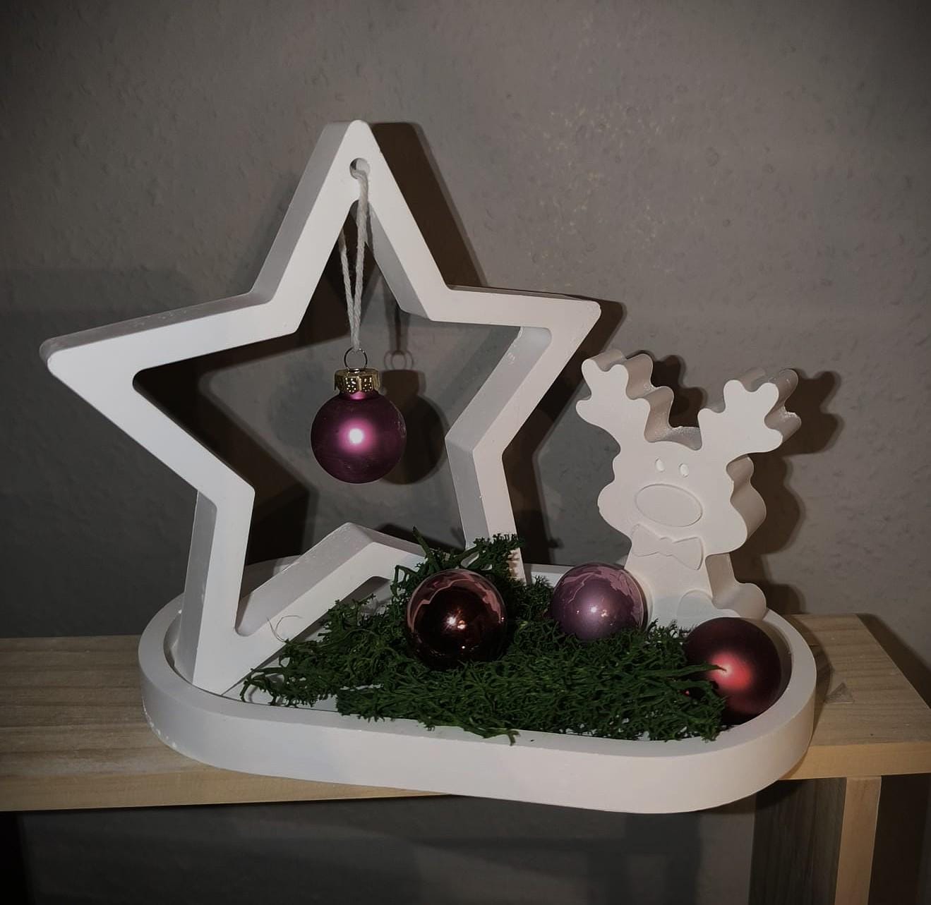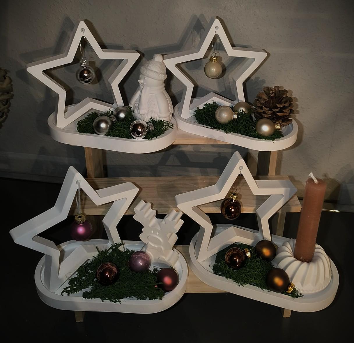 These lovingly handcrafted Christmas trays made from high-quality casting powder bring festive sparkle to your home. Adorned with stars, moss, baubles, and candle holders, they are a stylish eye-catcher for your table, shelf, or windowsill.