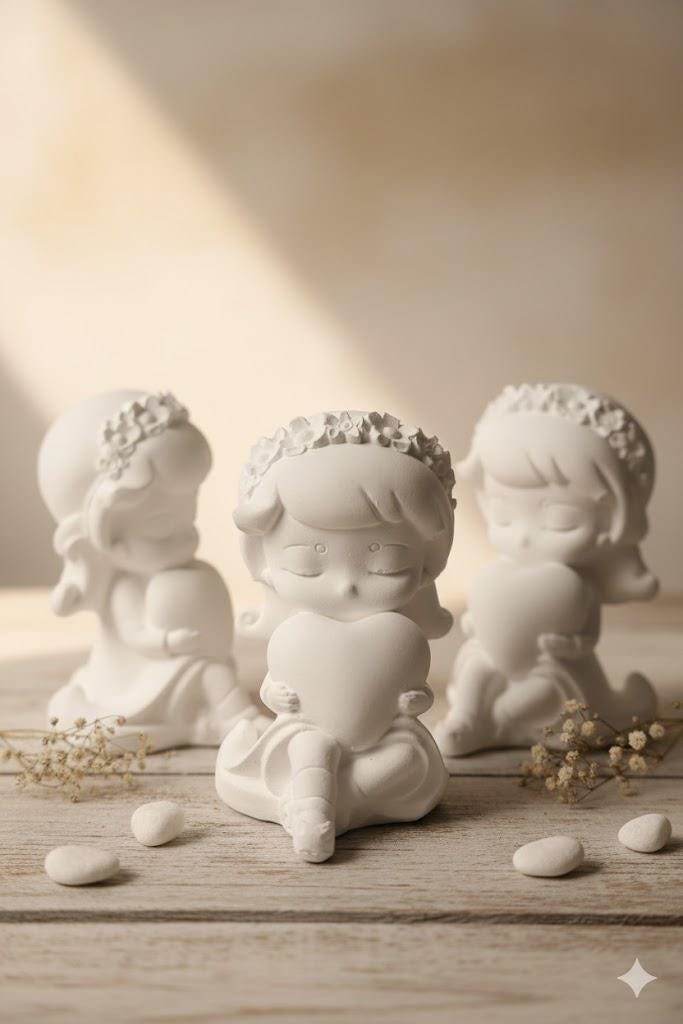 Your angel was crafted from a high-quality blend of Raysin and Venusarm casting powder. This material is characterized by its velvety-matte, porcelain-like surface and high stability. The pure white color underscores the angel's heavenly elegance.