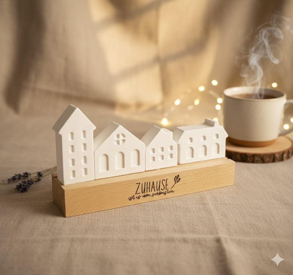 This charming row of houses, crafted from high-quality casting powder (Raysin or Venusarm), brings Scandinavian lightness and coziness to your home. Each house is cast and polished by hand with the utmost care – a truly unique piece that reflects a love for detail.