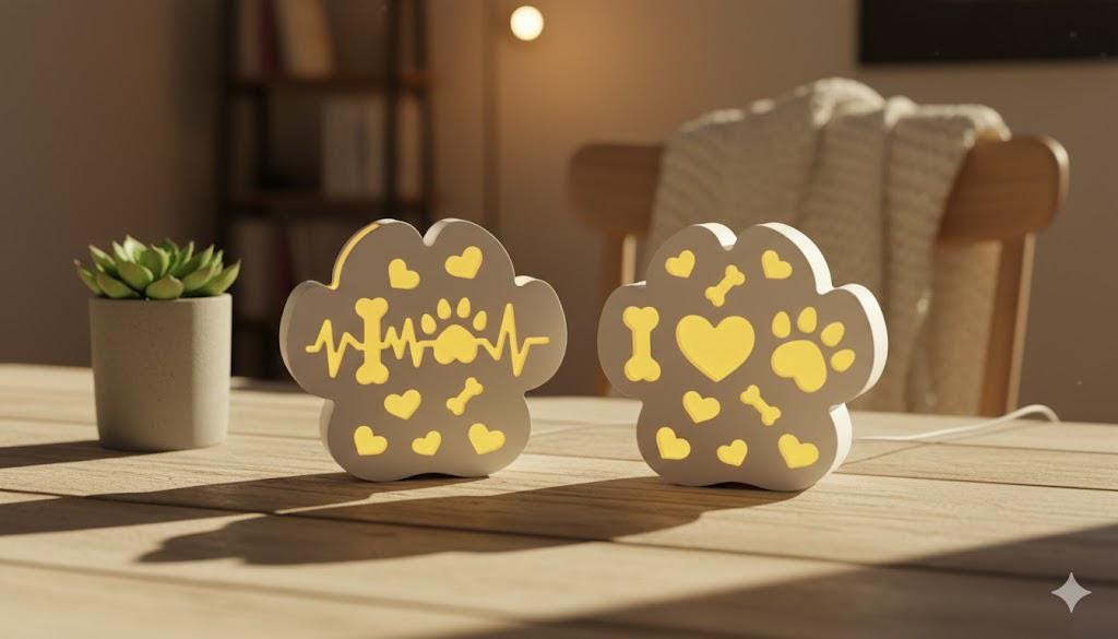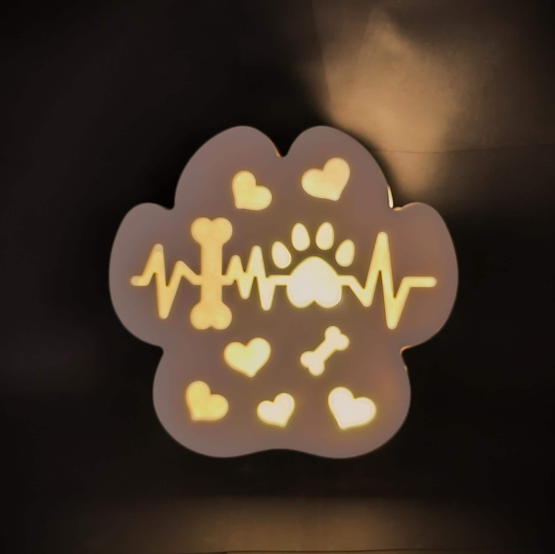 Atmospheric light: The warm LED cutouts (heartbeat, bones & paws) create a cozy oasis of well-being in any room.