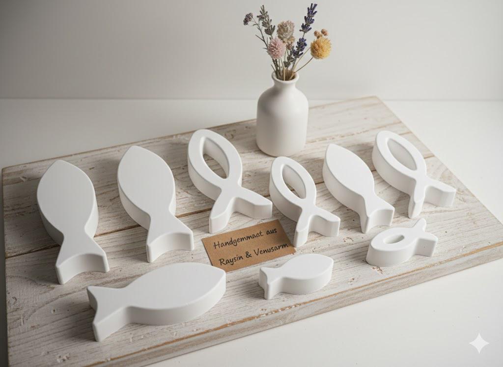 Whether for First Communion, Confirmation, or Baptism – as symbols of faith and community, they blend harmoniously into any table setting. Each fish is lovingly hand-cast with meticulous attention to detail, resulting in unique little pieces with a timeless character.