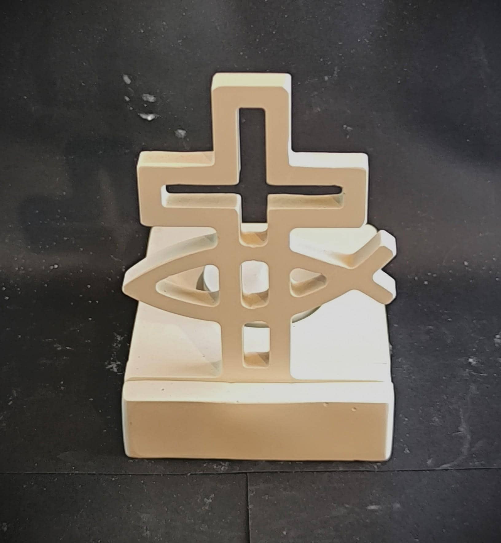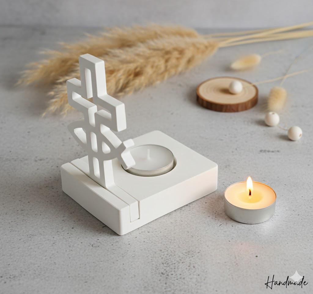 This handcrafted tealight holder, made from high-quality casting powder, combines modern aesthetics with profound symbolism. Its minimalist design featuring a cross and fish makes it the ideal companion for Christian celebrations such as baptism, communion, or confirmation.