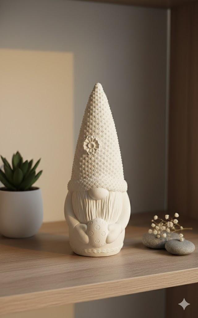 The minimalist color scheme blends harmoniously into modern, natural, or Scandinavian interior design concepts. Whether on a shelf, a sideboard, or as a table decoration – this little gnome creates a calm, cozy atmosphere in the Hygge style.