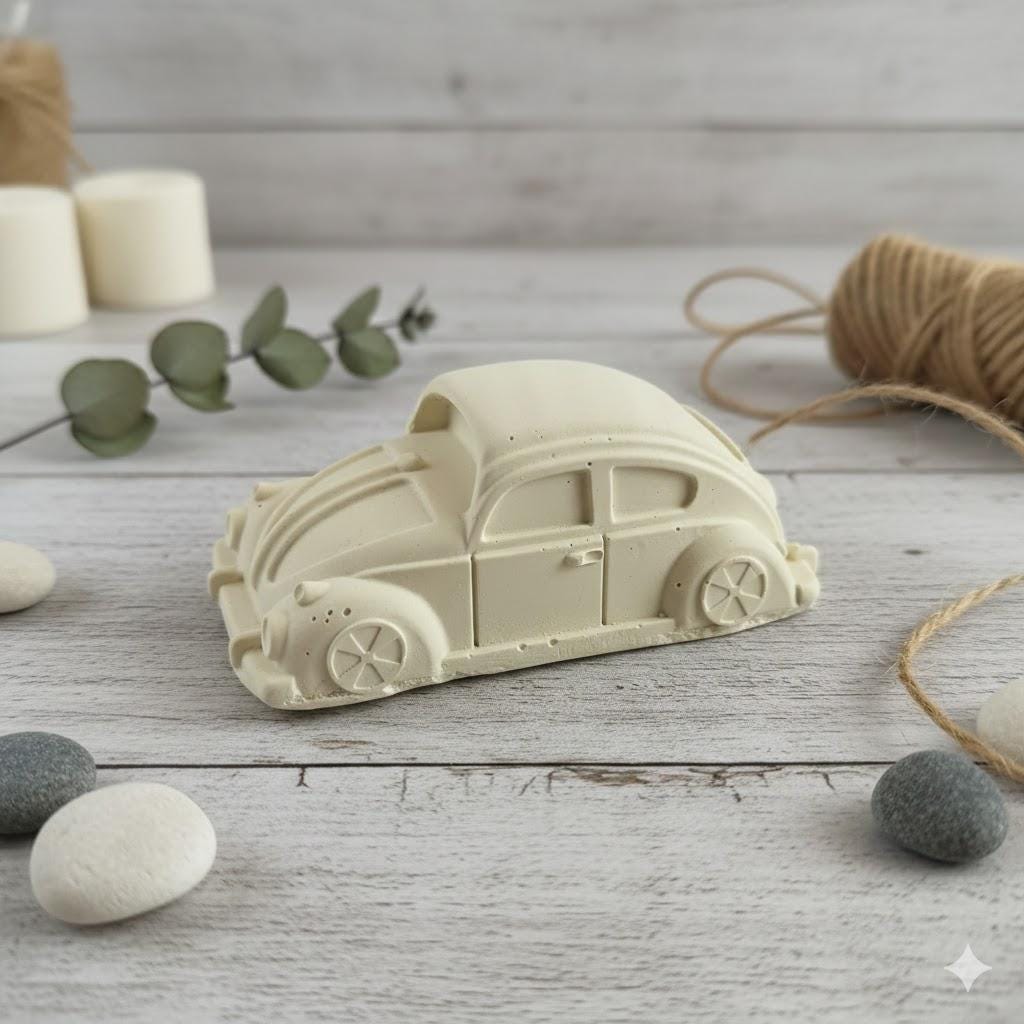 This handcrafted decorative car in a nostalgic retro style impresses with its silky matte white surface and the characteristic, clean look of high-quality casting powder. Whether as a highlight on a shelf, on a desk, or as a thoughtful gift – this unique piece fits perfectly with modern Scandinavian or boho styles.