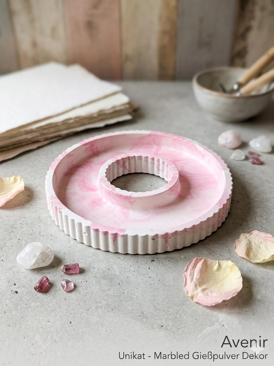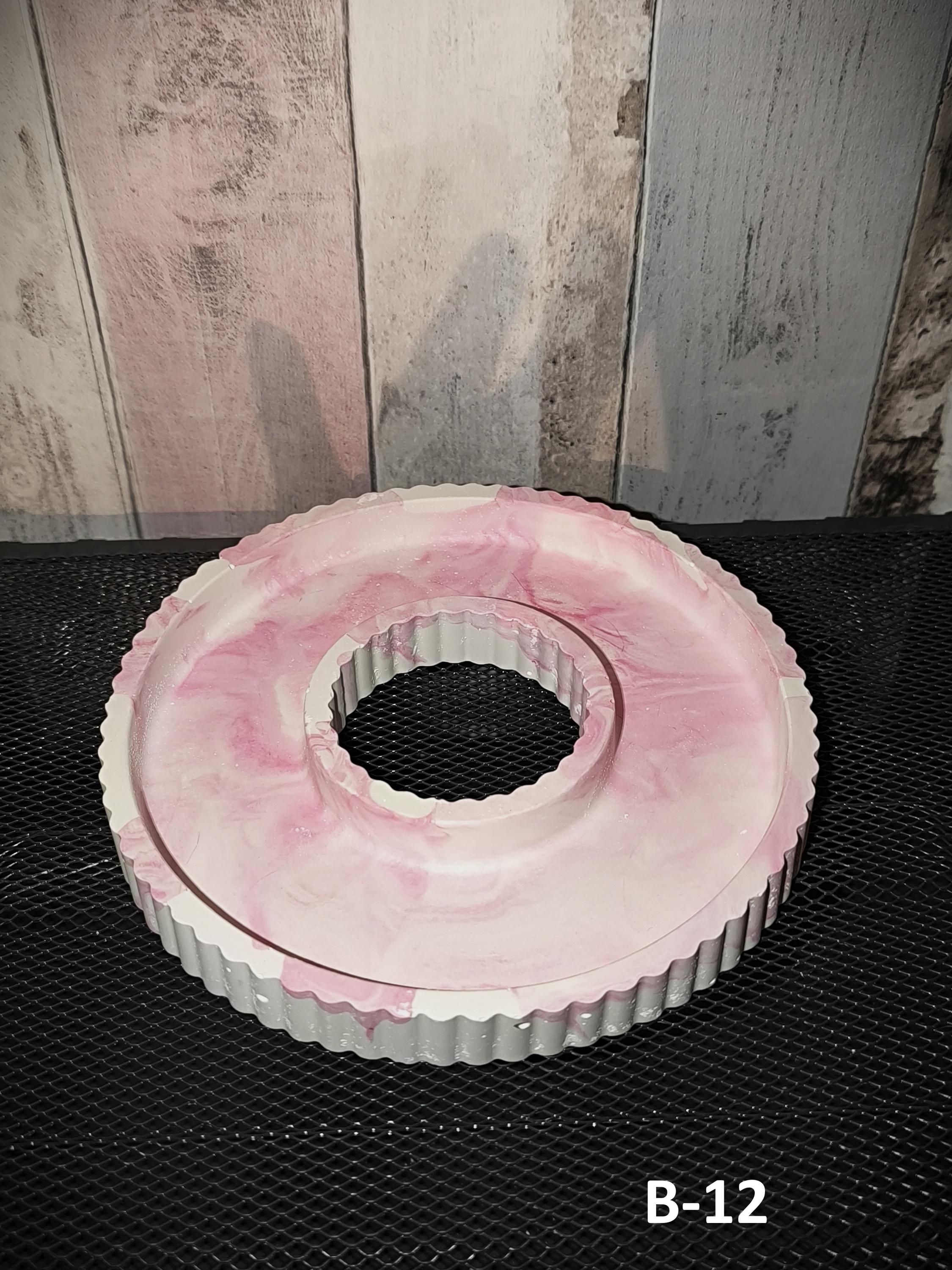 B-grade Raysin marbled candle holder | Unique piece with character & heart | Decorative plate made of casting powder | Pink and white pastel | Handmade with love and imperfections